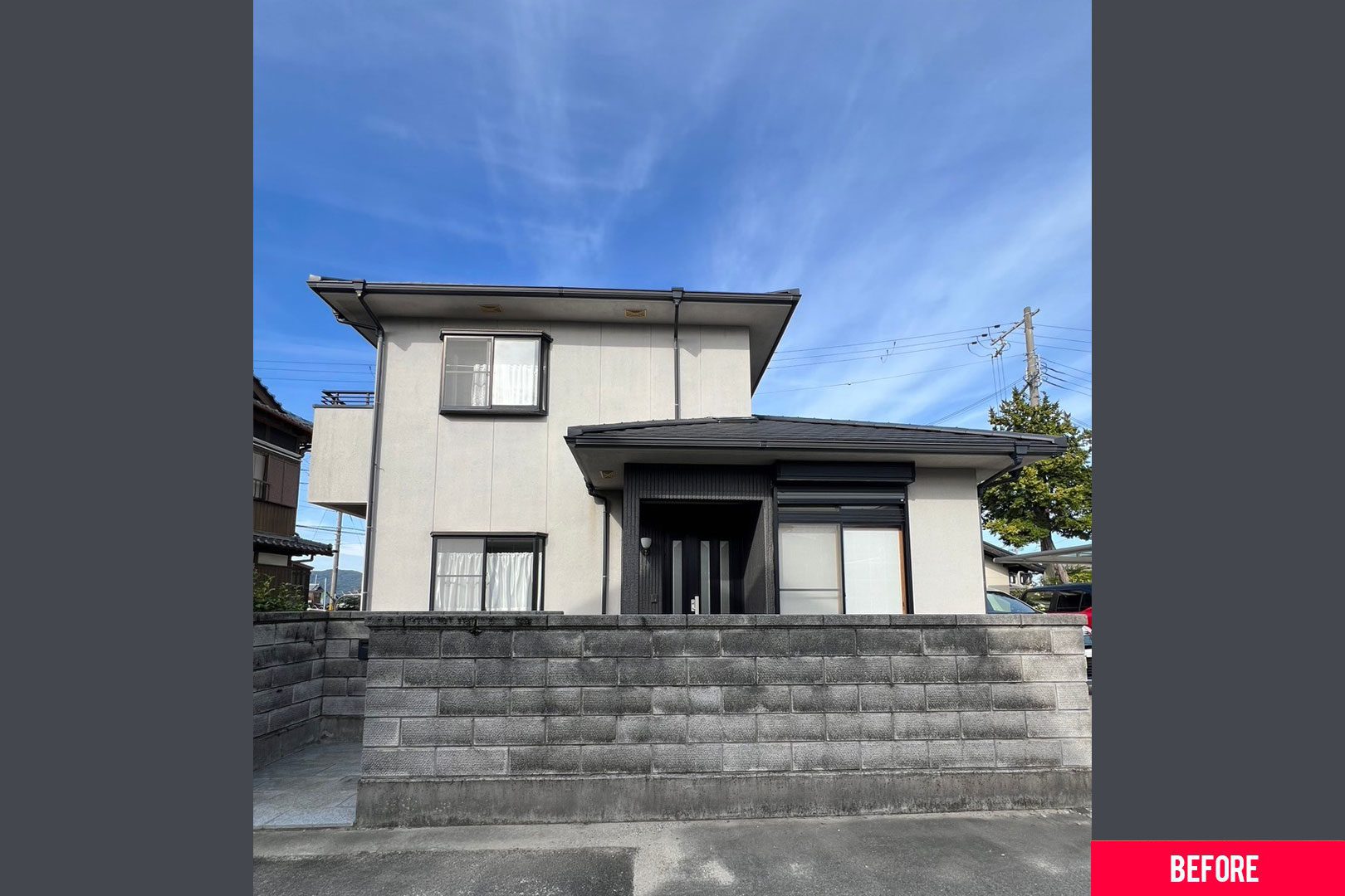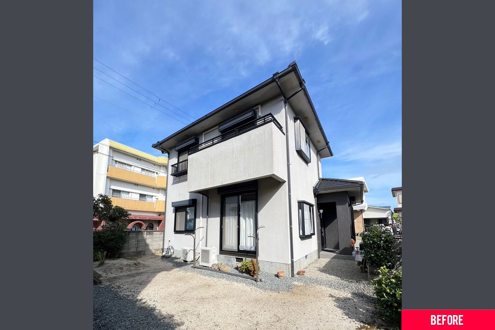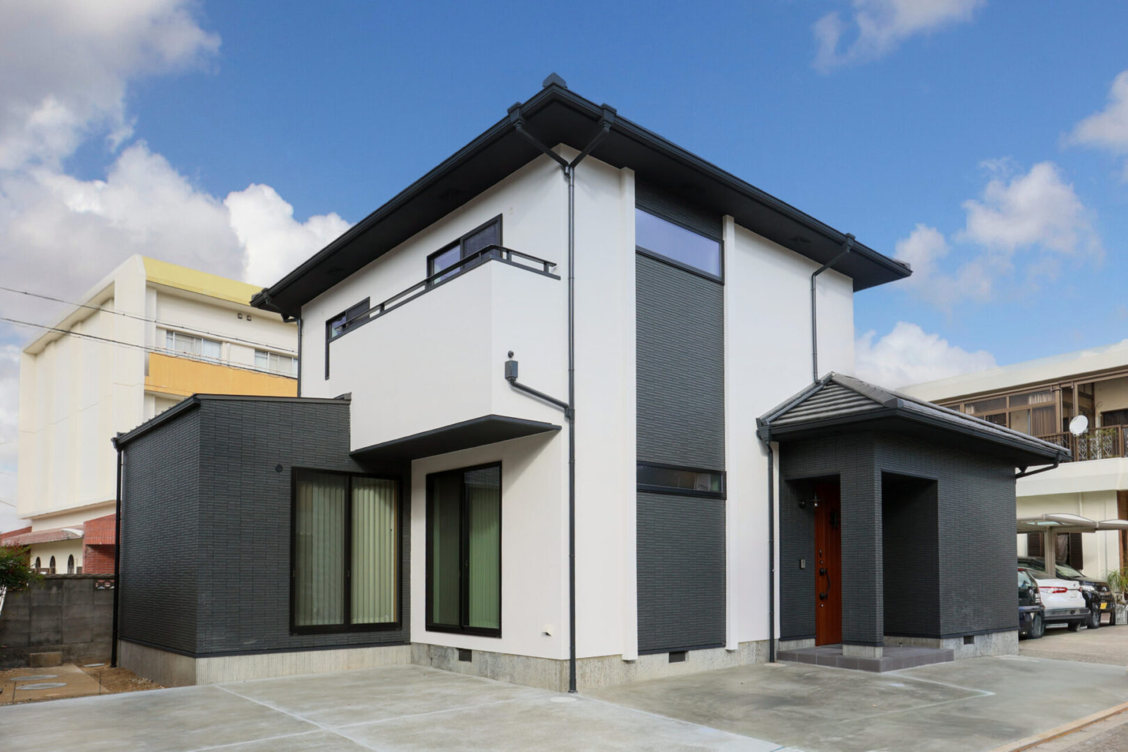 外観はおしゃれなカフェ風で中に入るとグレーと木目のインテリアがかわいい平屋のお家です♪