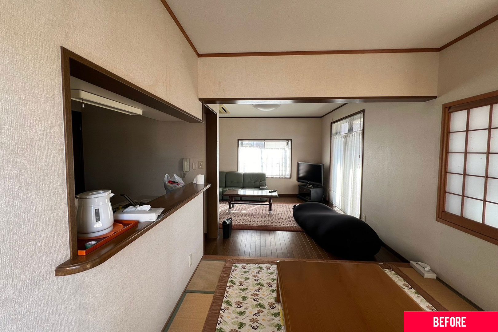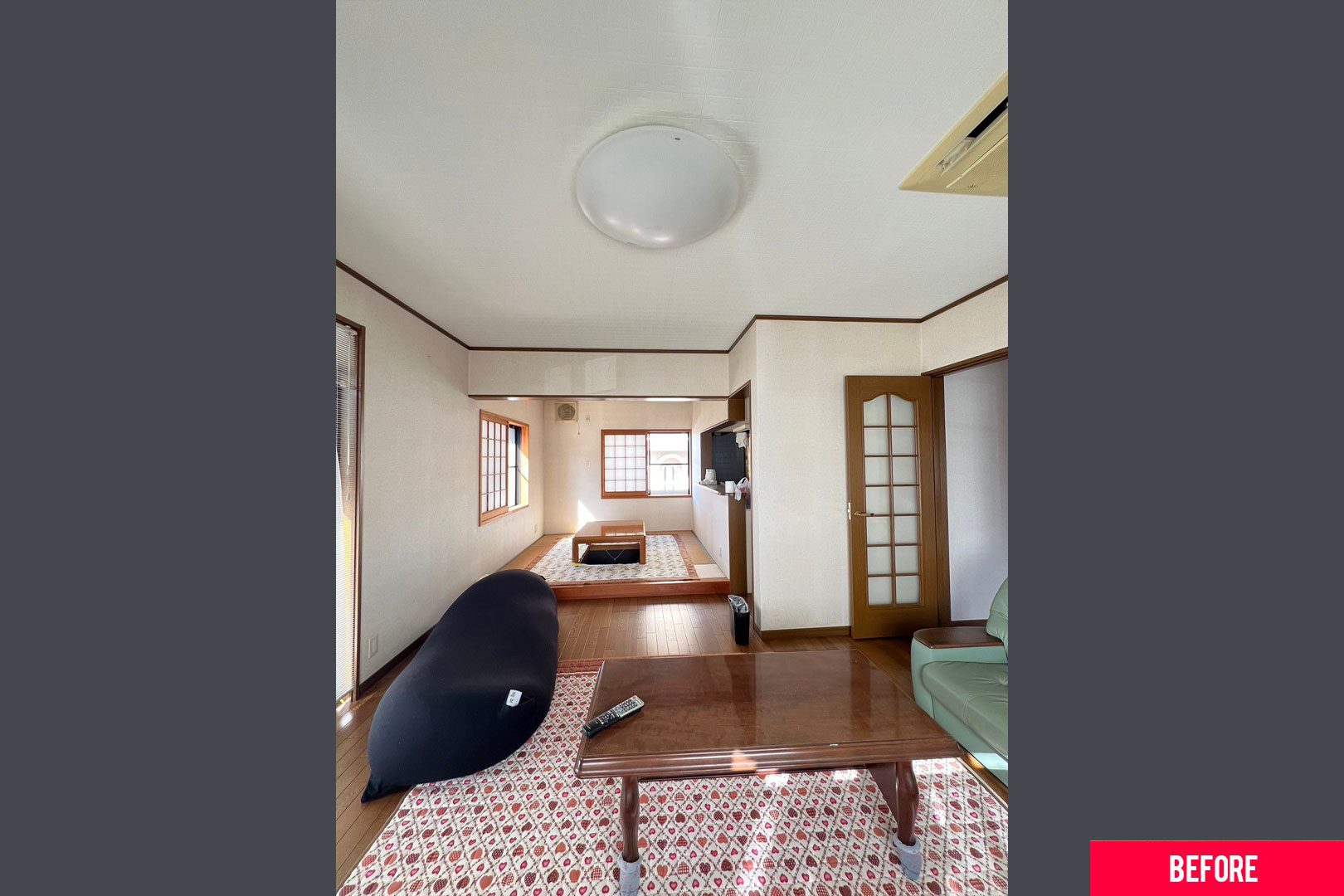子育てにひと段落が付いたご夫婦がお家時間をより良い時間にするためにリノベを決意。 元々は3LDKだった空間をお子様、お孫様まで集まっても広く使えるように1LDKにしました。